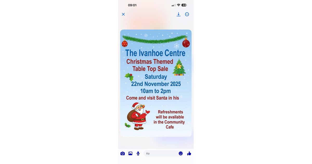 Join us at The Ivanhoe Centre for a festive Christmas Themed Table Top Sale. Enjoy a visit from Santa Claus and refreshments available in the Community Cafe. A perfect way to embrace the holiday spirit and find some unique gifts.