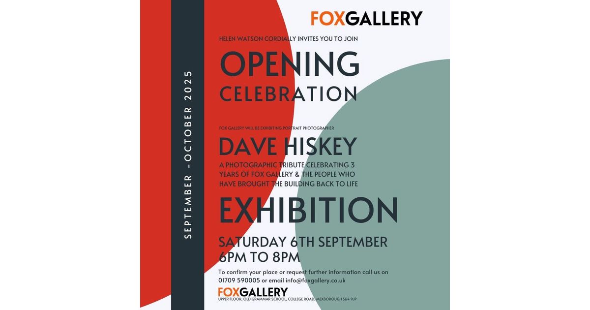 Helen Watson invites everyone to the Opening Celebration at Fox Gallery. Portrait photographer Dave Hiskey will be exhibiting a photographic tribute celebrating 3 years of Fox Gallery and the individuals who have revitalized the building.