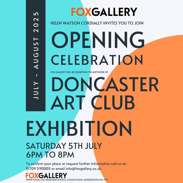 Fox Gallery invites everyone to join the opening celebration of the Doncaster Art Club Exhibition, where artwork from the Doncaster Art Club will be showcased. The event takes place on Saturday, 5th July, from 6:00 PM to 8:00 PM. For more information or to confirm attendance, contact the gallery via phone or email.