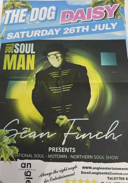 Sean Finch presents a sensational soul, Motown, and Northern soul show. Join the vibrant event at The Dog Daisy for an unforgettable evening of live music.