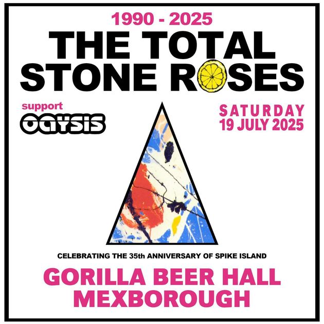 The Total Stone Roses will perform live with support from Oaysis at the Gorilla Beer Hall in Mexborough. This event celebrates the 35th anniversary of Spike Island.