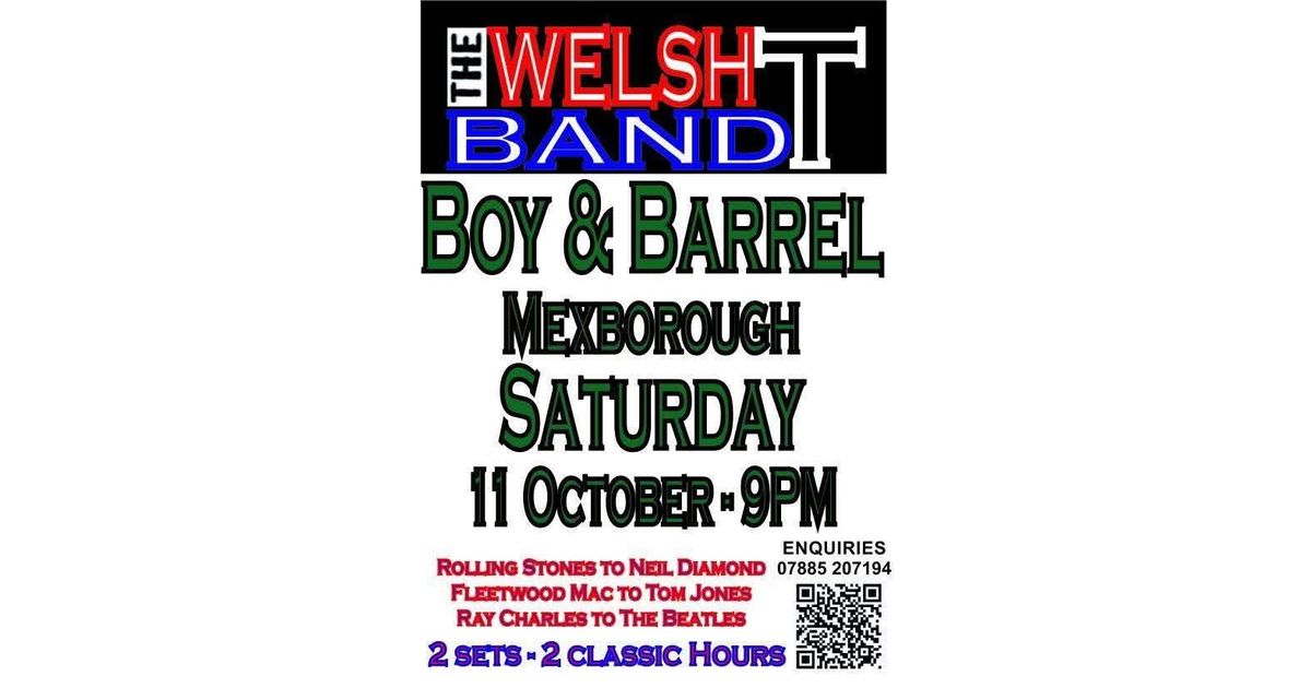 Enjoy a night of classic hits with The Welsh T Band at the Boy & Barrel in Mexborough. Experience two sets featuring timeless tracks from the Rolling Stones to Neil Diamond, Fleetwood Mac to Tom Jones, and Ray Charles to The Beatles. Don't miss out on this lively musical event.